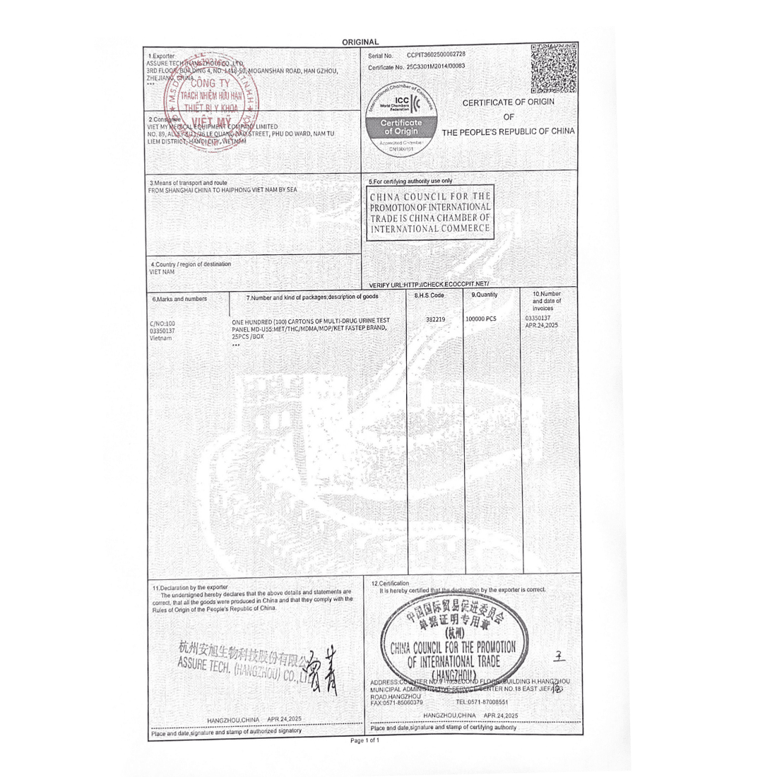 Test nhanh xét nghiệm định tính 5 chất gây nghiện MOP/CODEIN/HEROIN(6-MAM)/AMP/THC trong nước tiểu