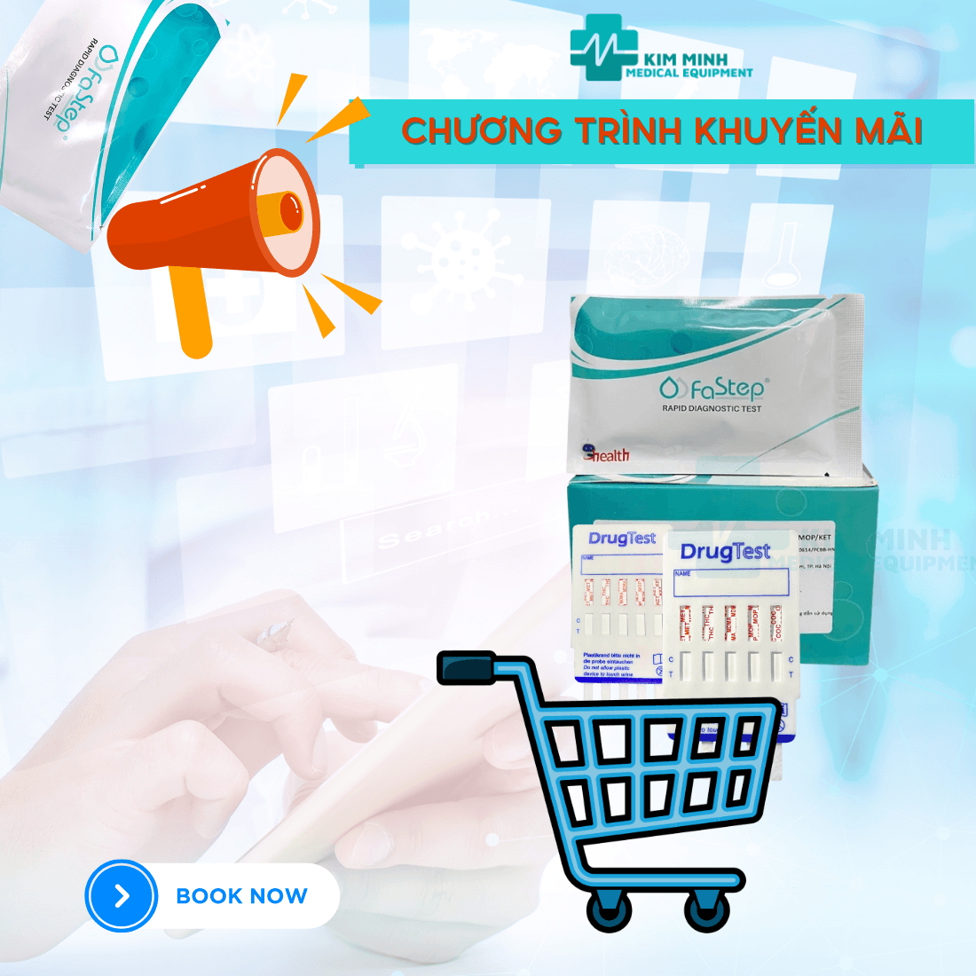 Hộp que thử 5 chân Fastep MET/THC/MDMA/MOP/COC-TBYT KIM MINH